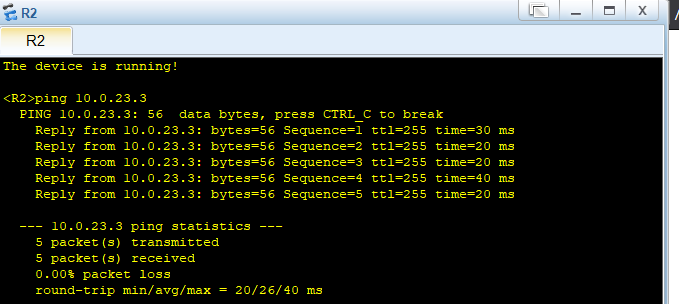 10.0.12.2,在 R2 上 ping 10.0.23.3。如果连通性有问题,请检查配置是否完全按照表