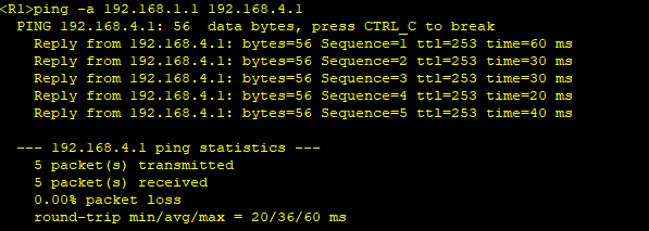 -a 192.168.1.1 192.168.4.1可以 ping 通,表明整个网络通信正常。