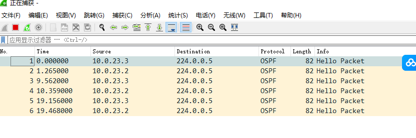 1)在 R1 的 GE0/0/1 和 R3 的 GE0/0/2 接口上进行抓包,设置过滤条件(提取 OSPF)。