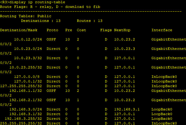 | GE0/0/2 | 10.0.23.3 | 255.255.255.0 |
